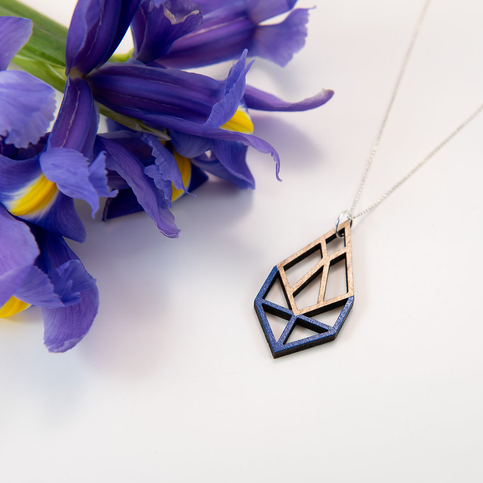 The Harris Earrings are hand-painted and made from laser-cut, beech wood (unless otherwise specified), finished with a Sterling Silver drop earring.